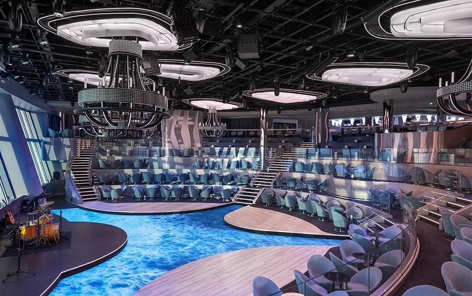 The Top Sail Lounge is the ultimate place to rest and relax after shore excursions or days at sea. Throughout the day, take in crystal-clear panoramic views of the ocean while enjoying crafted drinks, gourmet finger foods, and desserts. At night, relish in exclusive access to live music and after-dinner drinks.